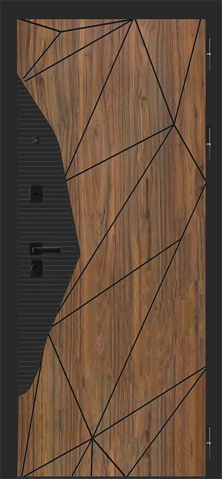Отделка двери с внешней стороны - МДФ панель 10 мм, «Орех каньон коньяк»;